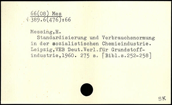 Standardisierung und Yerbrauchsnormung in der sozialistischen Chemieindustrie. Leipzig,YEB Leut.Verl0für Grundstoffindustrie, 1960.