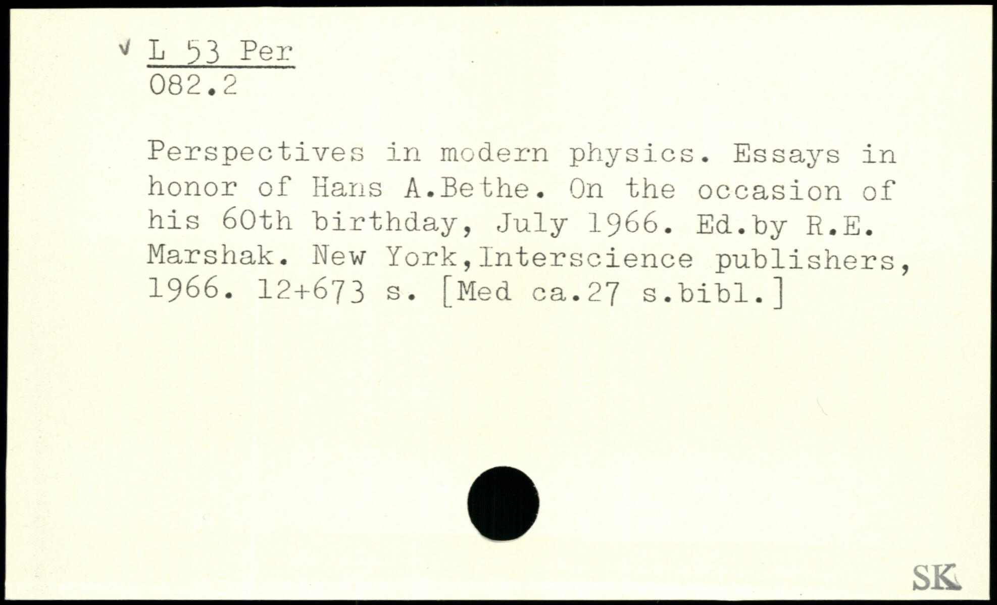 Perspectives in modern physics. Essays in honor of Hans A.Bethe. On the occasion of his 60th birthday, July 1966. Ed.by R.E. Marshak.