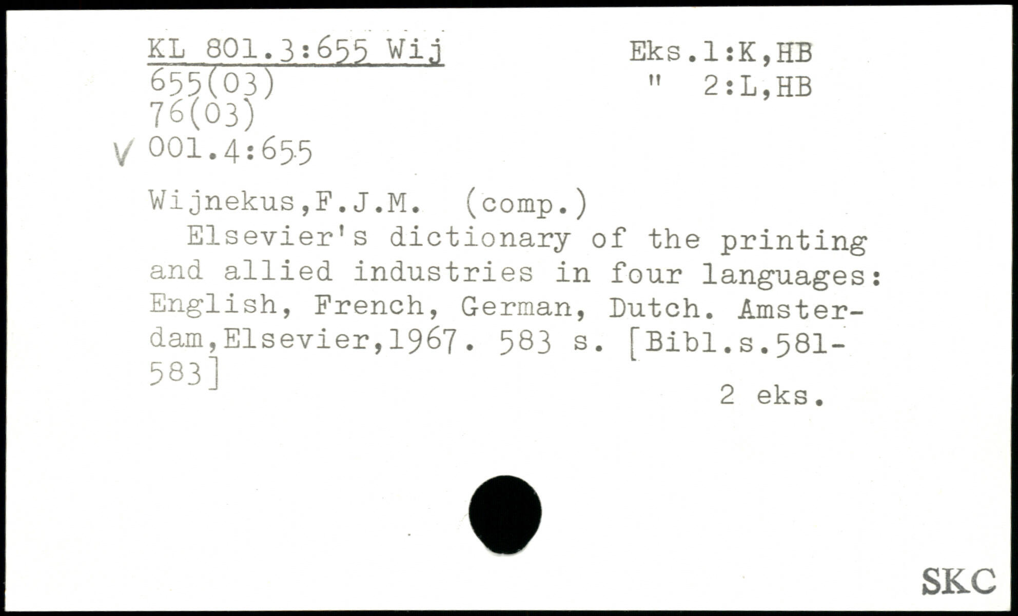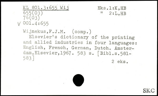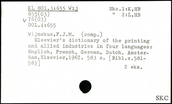 Elsevier’s dictionary of the printing and allied industries in four languages: English, French, German, Dutch.