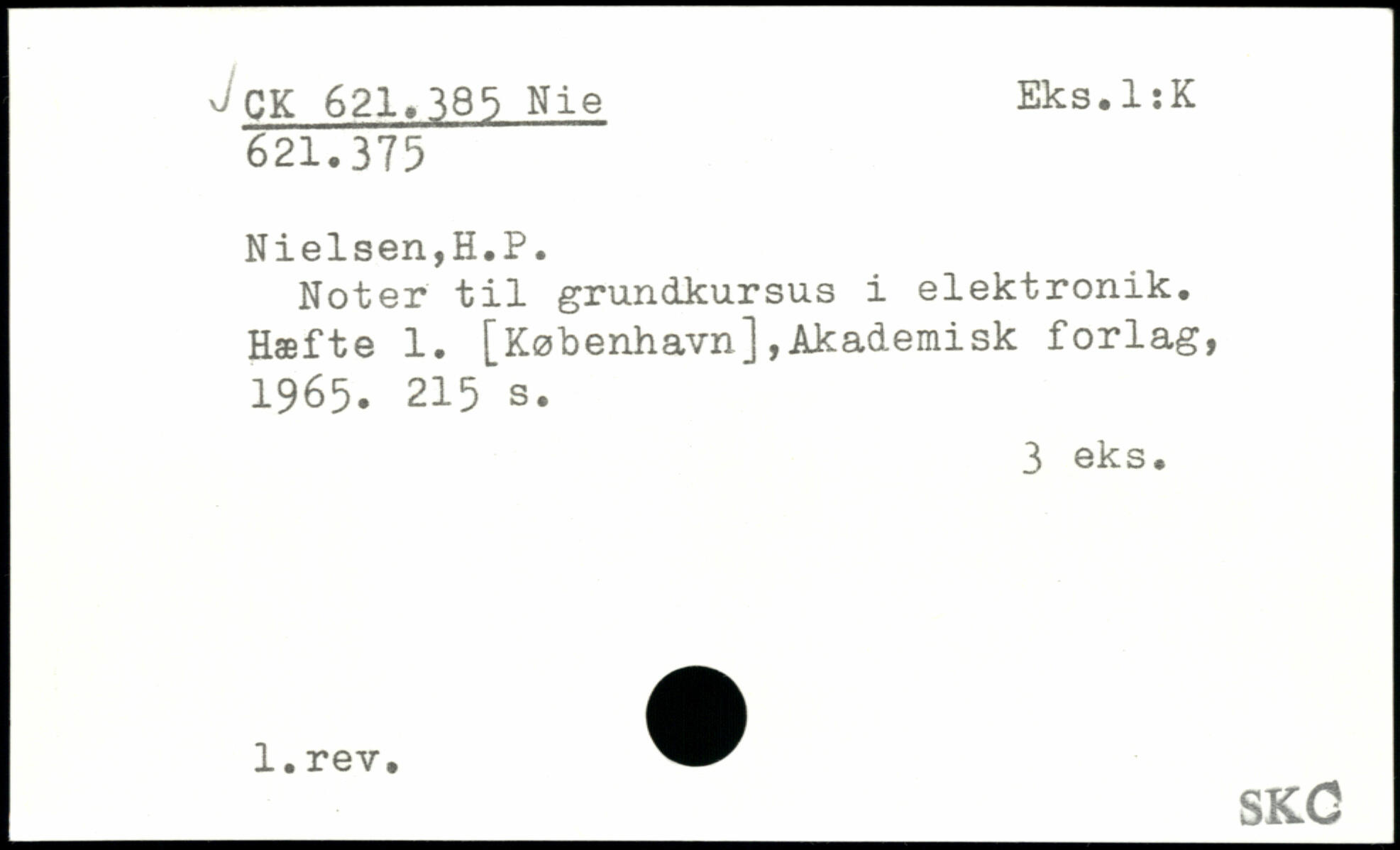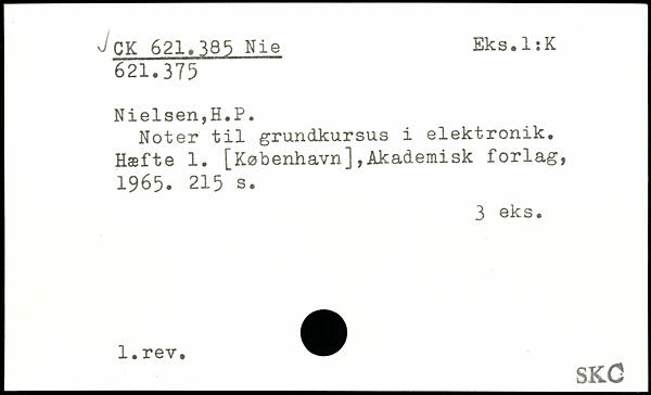 Noter til grundkursus i elektronik. Hæfte 1. [København],Akademisk forlag, 1965.