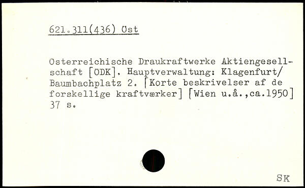 österreichische Draukraftwerke Aktiengesellschaft [öDK], Hauptverwaltung: Klagenfurt/ Baumbachplatz 2. [Korte beskrivelser af de forskellige kraftværker [Wien u.å.,ca.1950]