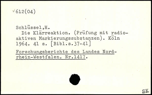 Die Klärreaktion. (Prüfung mit radioaktiven Markierungssubstanzen).