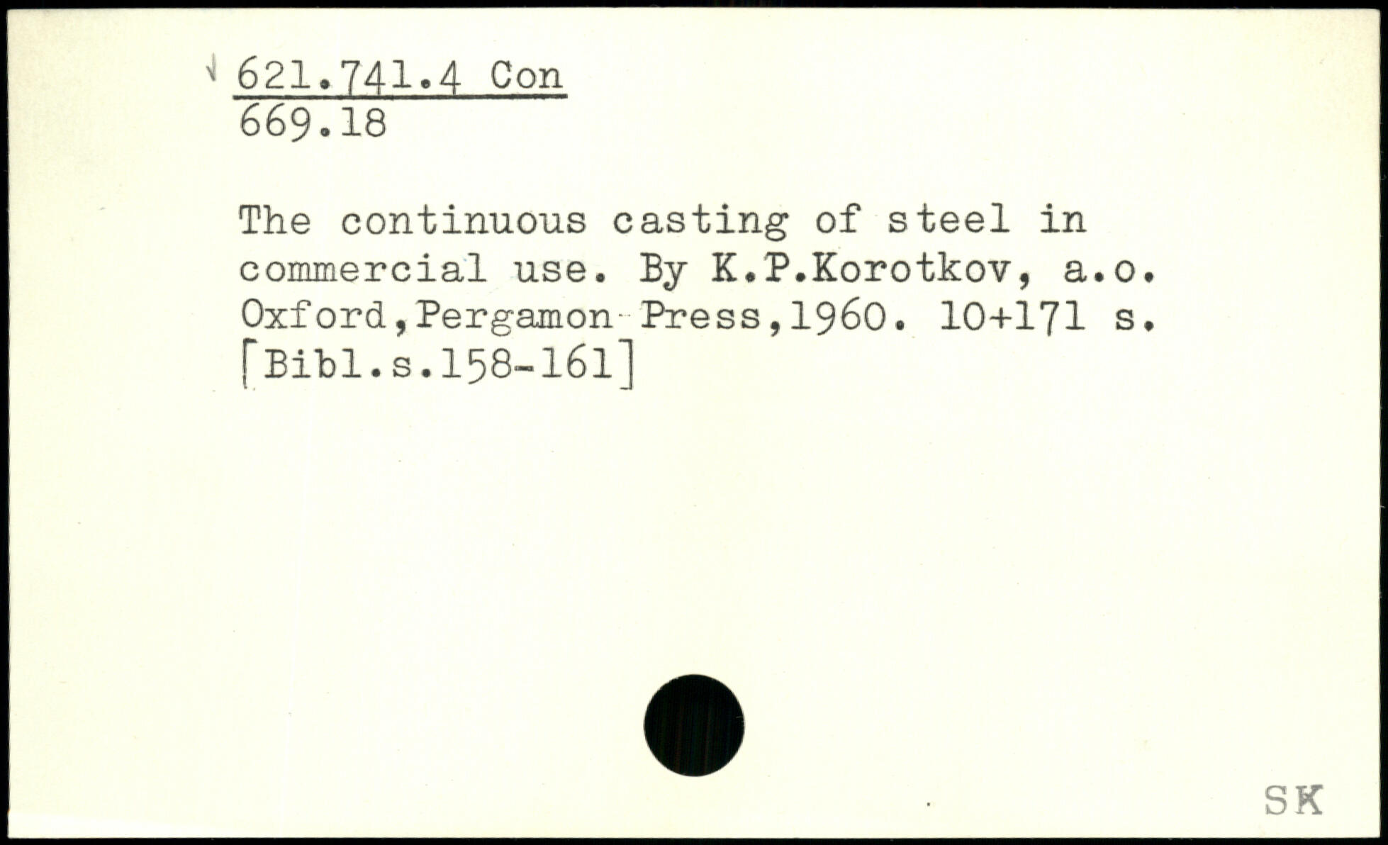 The continuous casting of steel in commercial use. By K.P.Korotkov, a.o.