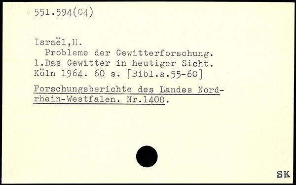 Probleme der Gewittertorschung. l.Das Gewitter in heutiger Sicht.