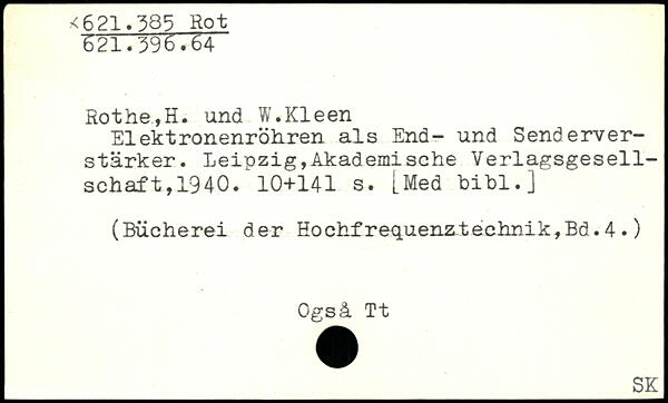 Rot he., H. und W. Kl een Elektronenröhren als End- und Senderverstärker.