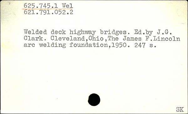 Welded deck highway bridges. Ed.by J.G. Clark. Cleveland,Ohio,The James E.Lincoln arc welding foundation,1950.