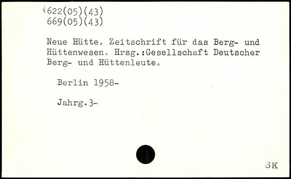Neue Hütteo Zeitschrift für das Berg- und Hüttenwesen,, Hrsg. iGesellschaf t Deutscher Berg- und Hüttenleute