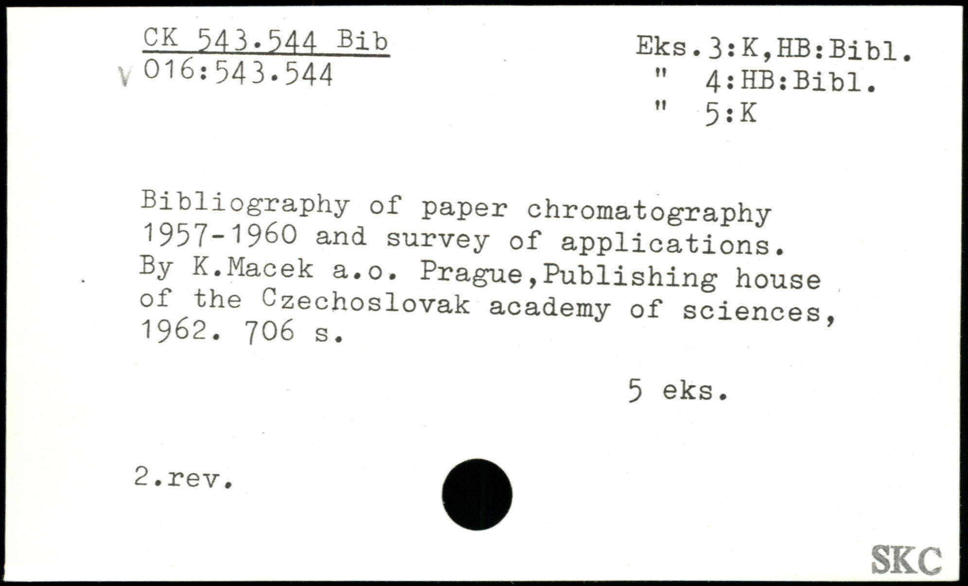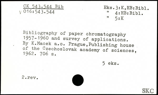 of paper chromatography 1957-1960 and survey of applications. By K.Macek a.o. Prague,Publishing house of the Czechoslovak academy of sciences, 1962.