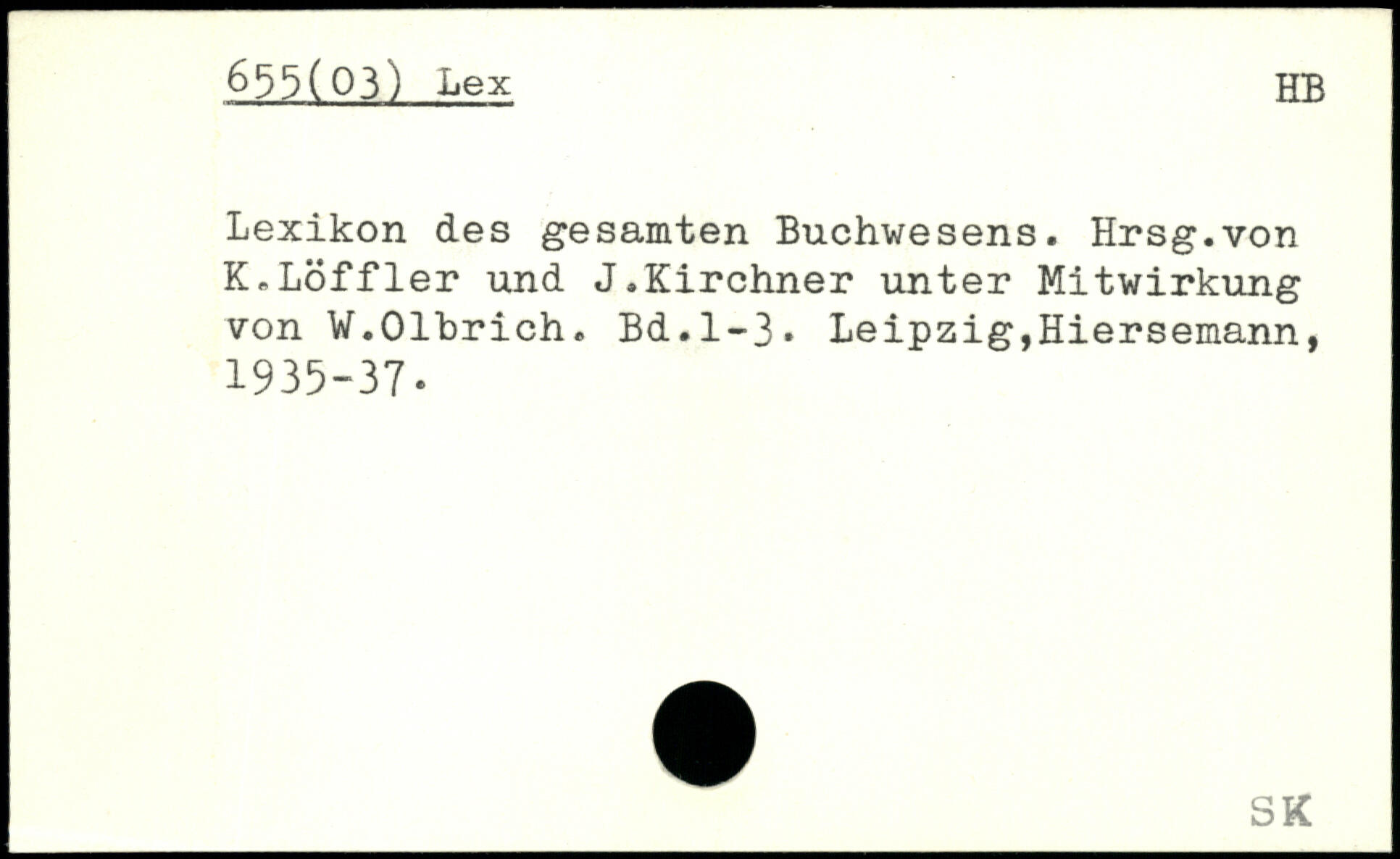 Lexikon des gesamten Buchwesens. Hrsg.von K.Löffler und J.Kirchner unter Mitwirkung von ¥.Olbrich.