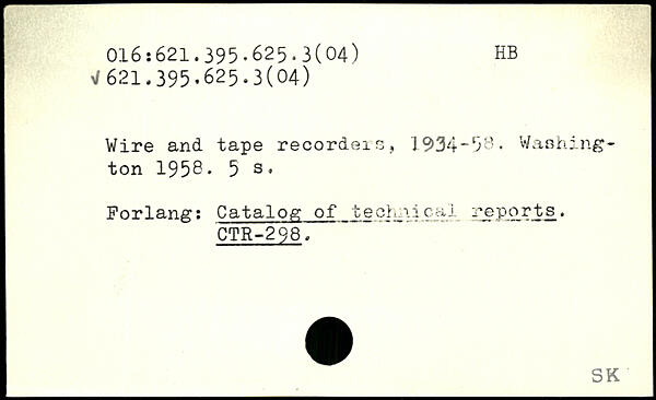 Wire and tape recordeis, 1934-58.