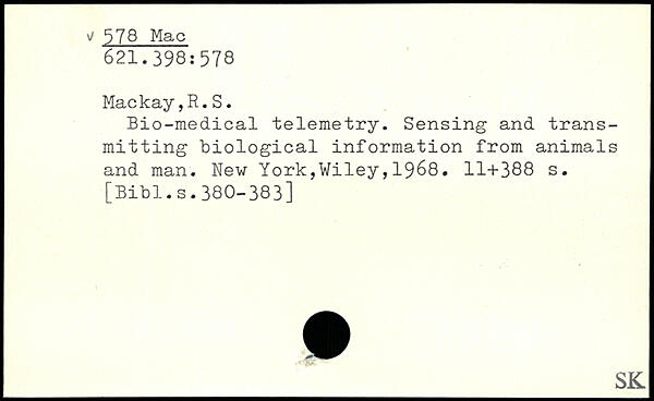 Bio-medical telemetry. Sensing and transmitting biological information from animals and man.