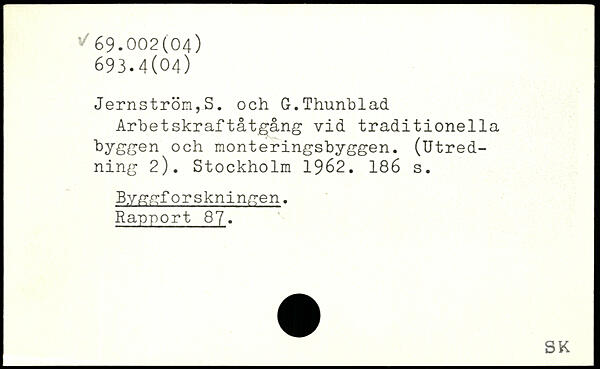 Arbetskraftåtgång vid traditionella byggen och monteringsbyggen. (Utredning 2).