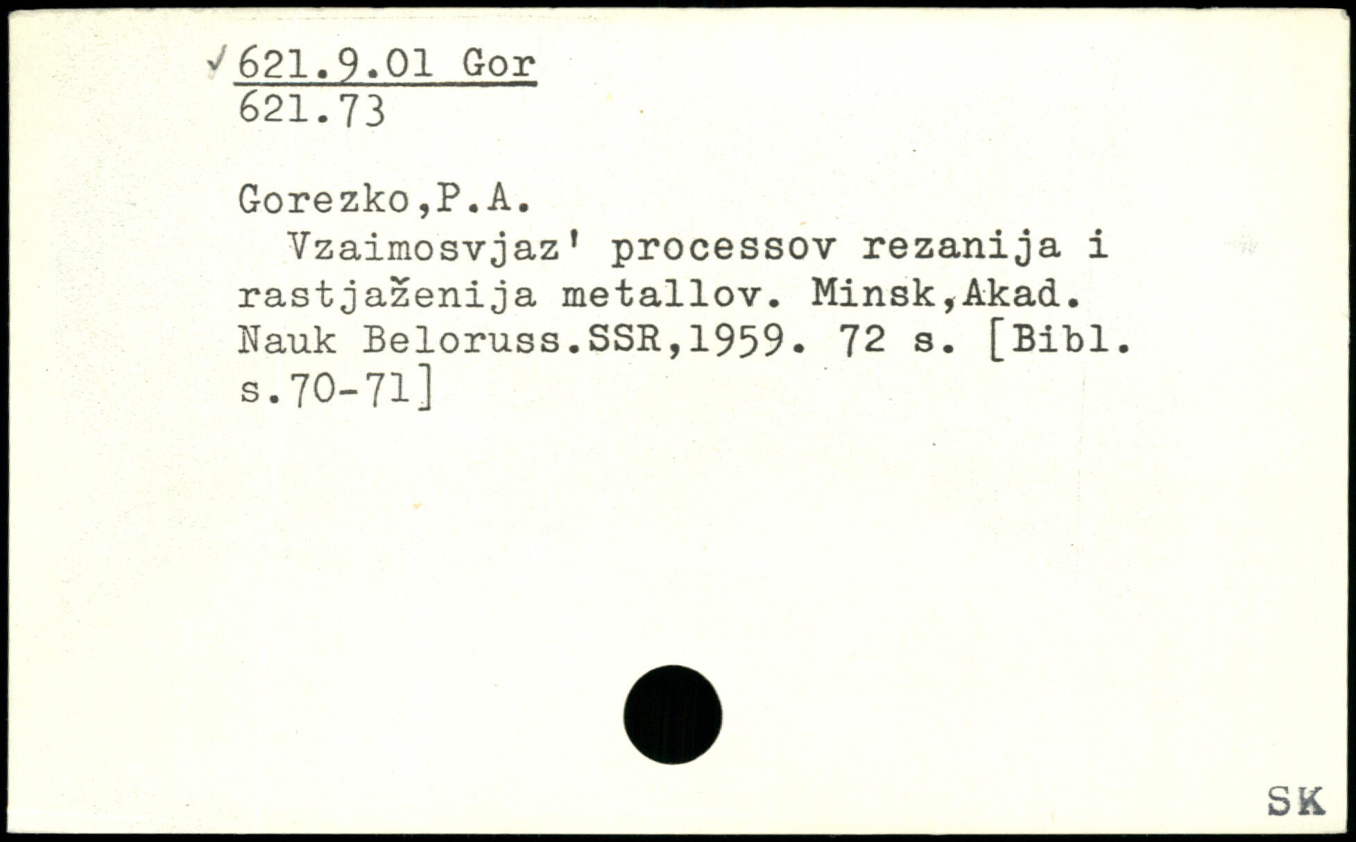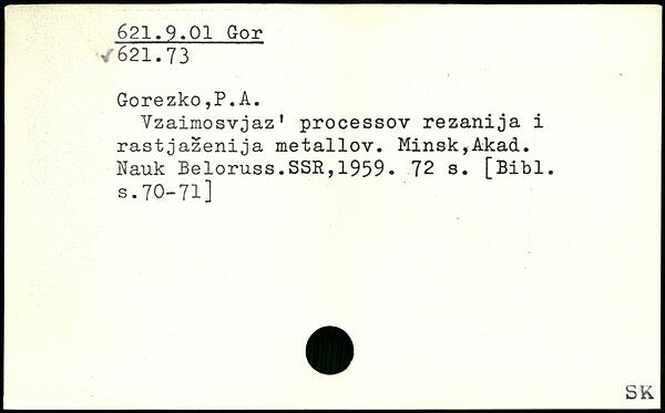 Vzaimosvjaz' processov rezanija i rastjazenija metallov. Minsk,Akad. Nauk Beloruss.SSR,1959.