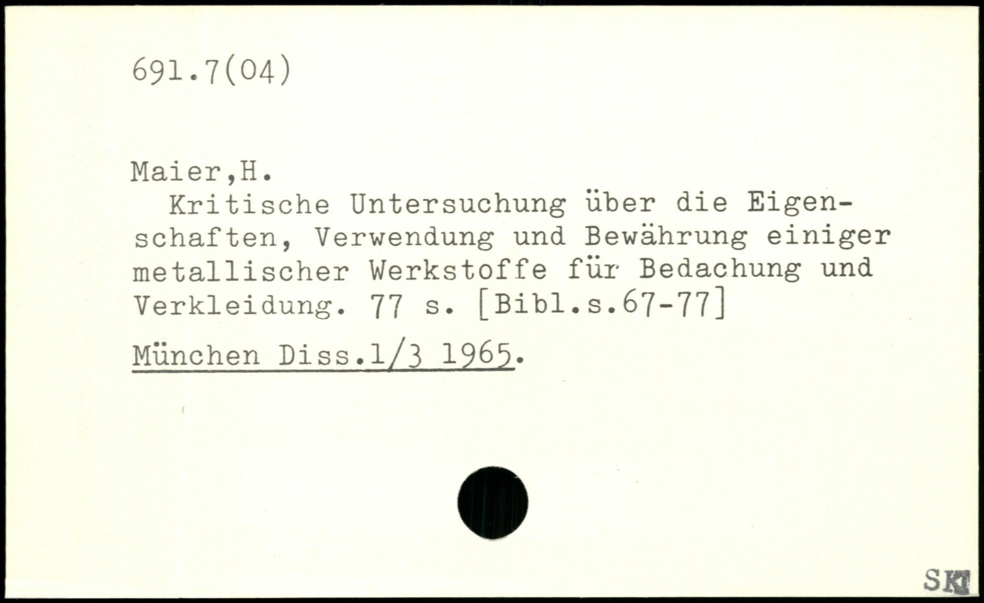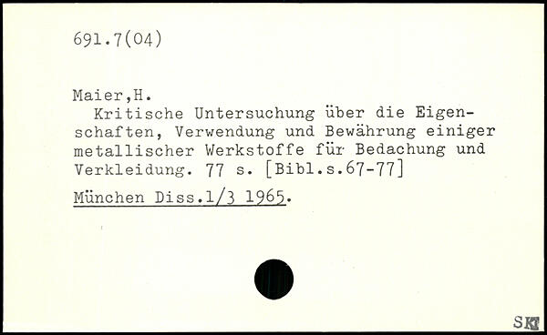 Kritische Untersuchung über die Eigenschaften, Verwendung und Bewährung einiger metallischer Werkstoffe für Bedachung und Verkleidung.