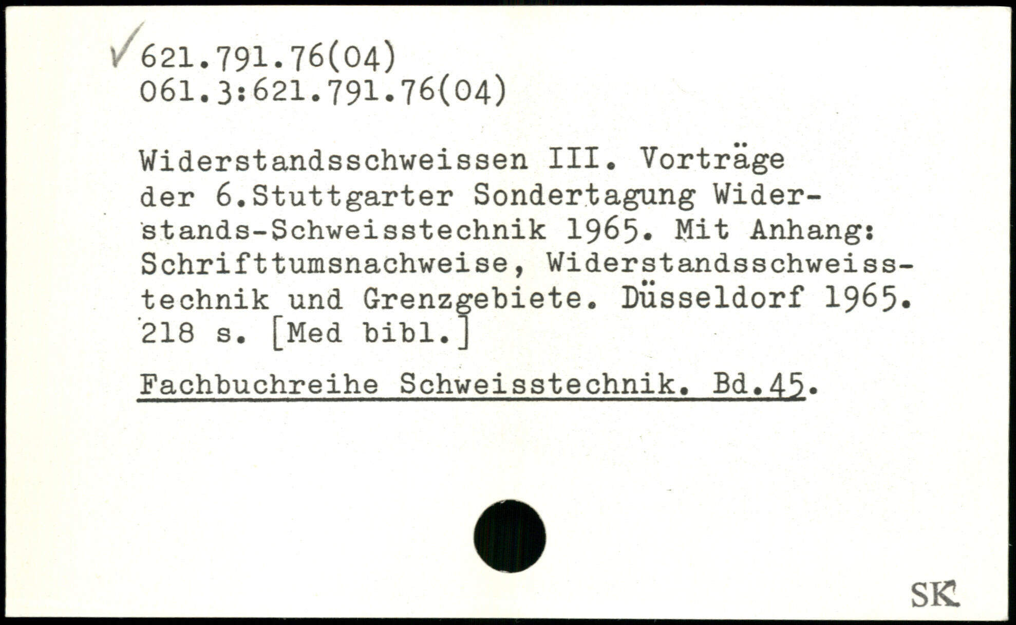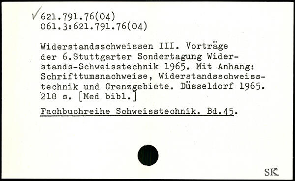 Widerstandsschweissen III. Vorträge der 6.Stuttgarter Sondertagung Wider-stands-Schweisstechnik 1965, Mit Anhang: Schrifttumsnachweise, Widerstandsschweiss-technik und Grenzgebiete. Düsseldorf 1965, '
