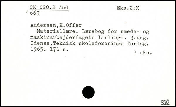 Andersen,K.Offer Materialisere. Lærebog for smede- og maskinarbejderfagets lærlinge. 3,udg. Odense,Teknisk skoleforenings forlag, 19é5-