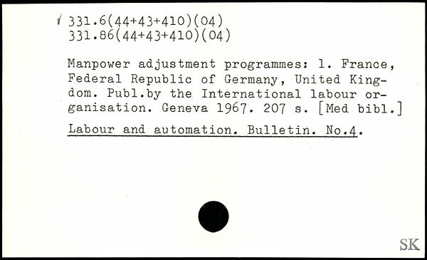 Manpower adjustment programmes: 1. France, Federal Republic of Germany, United Kingdom.