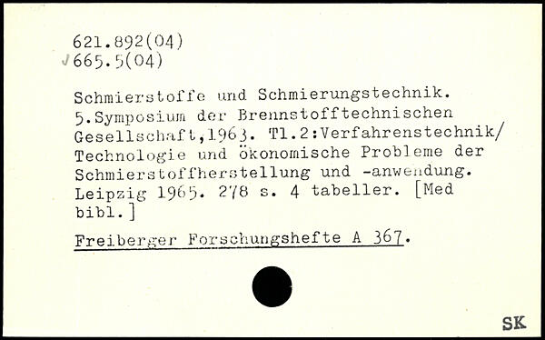 5. Symposium der Brennstoff technischen. Gesellschaft,1963. TI.2:Verfahrenstechnik/ Technologie und Ökonomische Probleme der Schmierstoffherstellung und -anwendung.