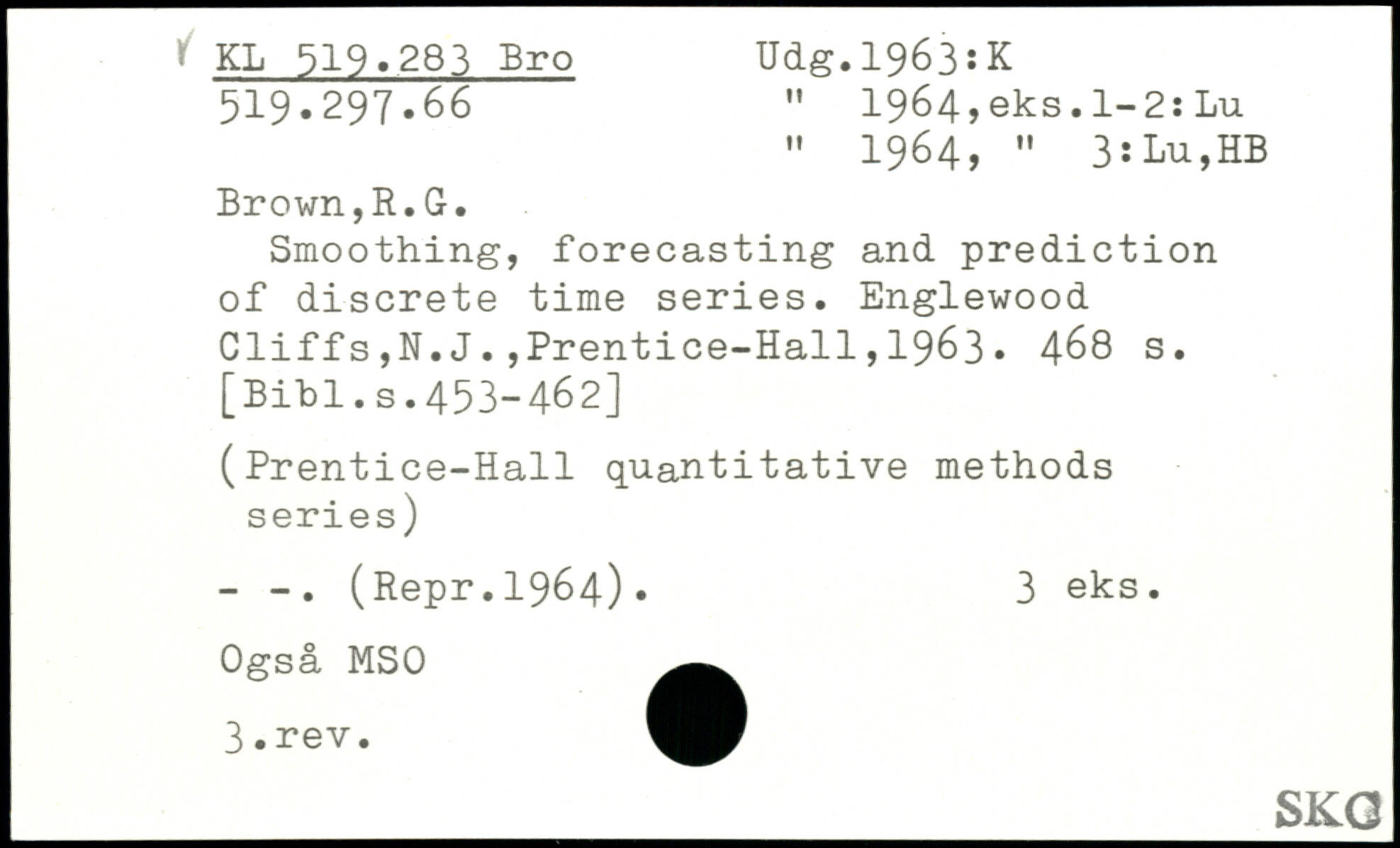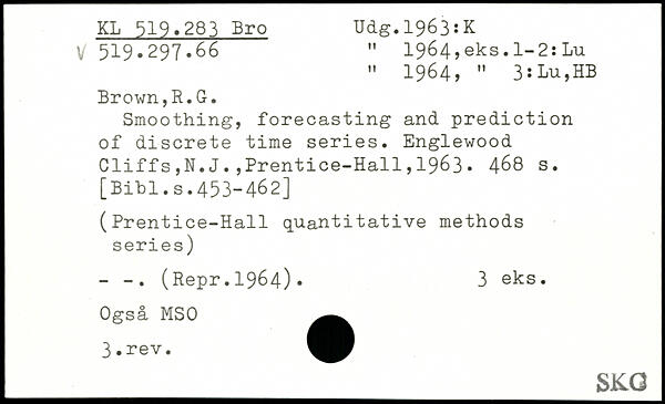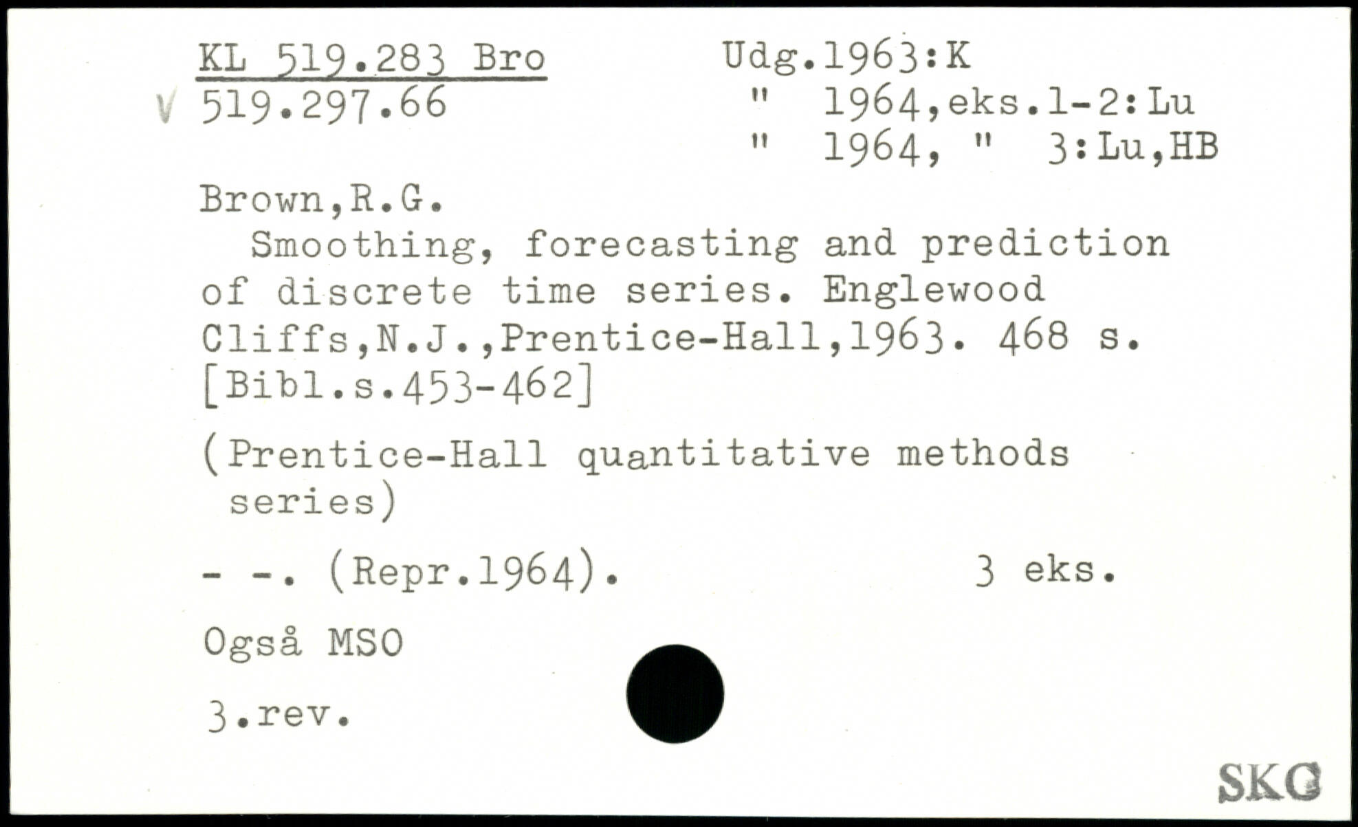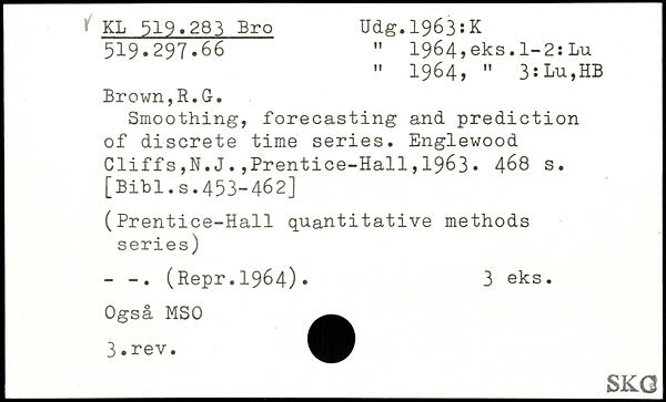 " 1964, " 3 ï Lu,HB Brown,R.G. Smoothing, forecasting and prediction of discrete time series.