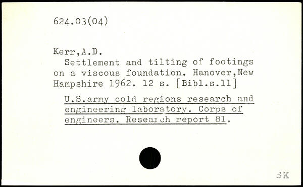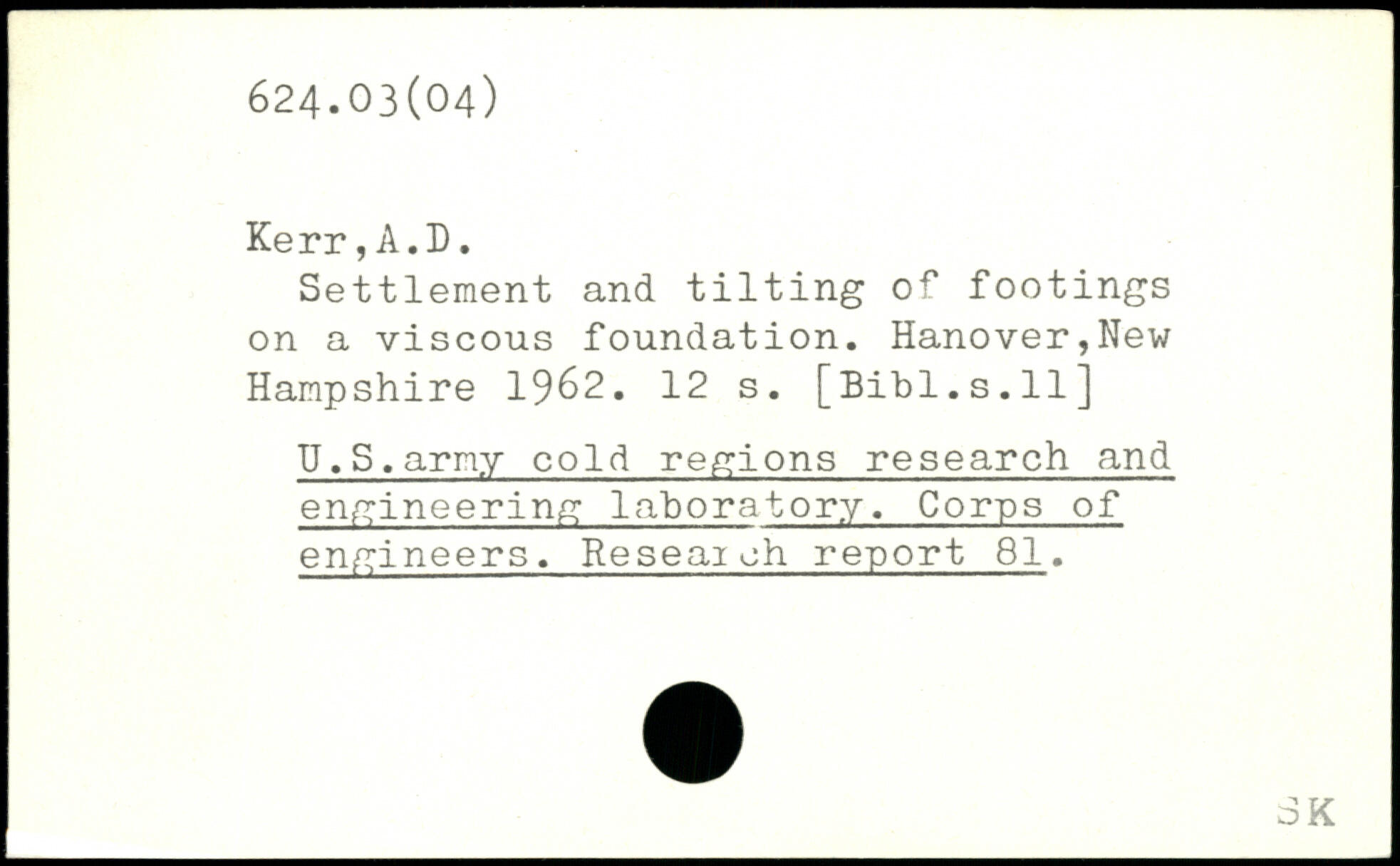 Settlement and tilting of footings on a viscous foundation. Hanover,New Hampshire 1962.