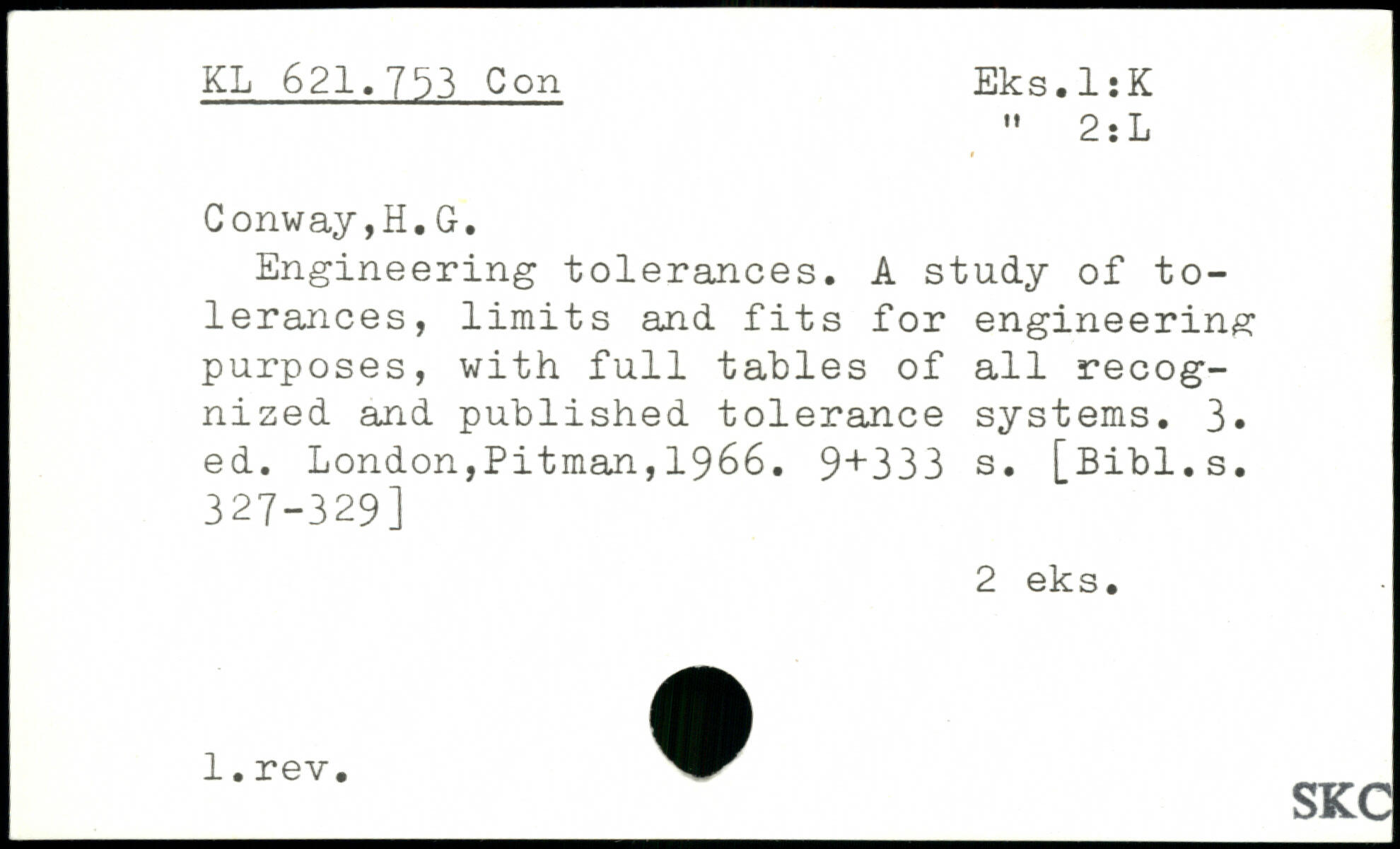 Engineering tolerances. A study of tolerances, limits and fits for engineering purposes, with full tables of all recognized and published tolerance systems. 3, ed.