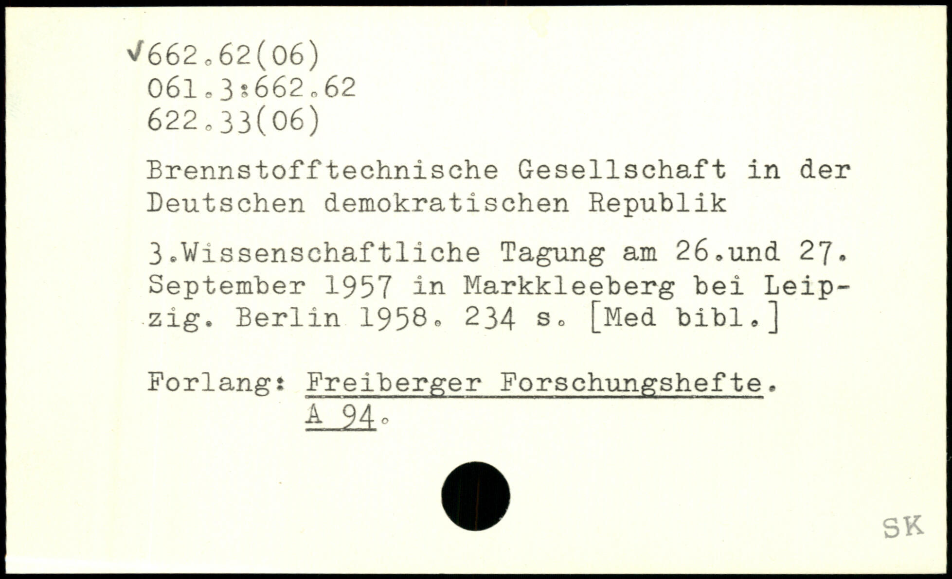 Brennstofftechnische Gesellschaft in der Deutschen demokratischen Republik 3,Wissenschaftliche Tagung am 26,und 27. September 1957 in Markkleeberg bei Leipzig.