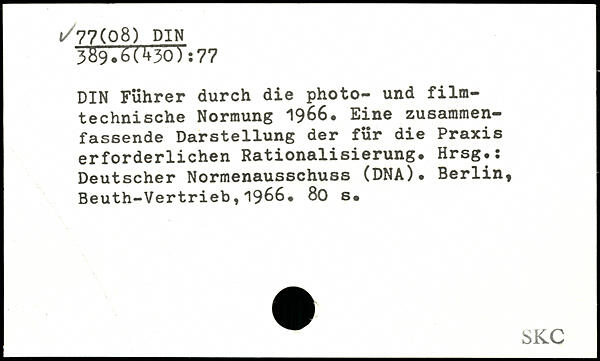DIN Führer durch die photo- und filmtechnische Normung 1966. Eine zusammen— fassende Darstellung der für die Praxis erforderlichen Rationalisierung. Hrsg.: Deutscher Normenausschuss (DNA).
