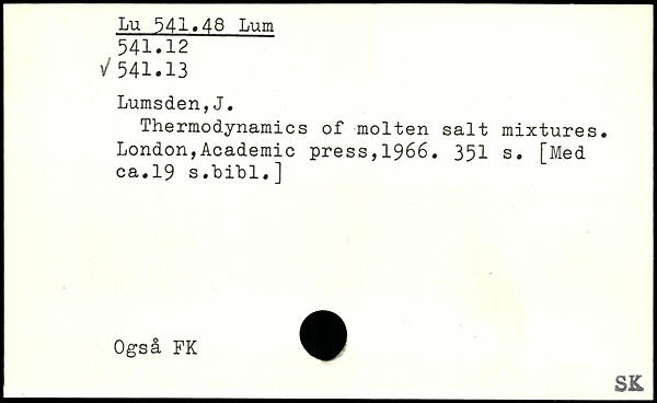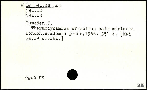 Thermodynamics of molten salt mixtures.