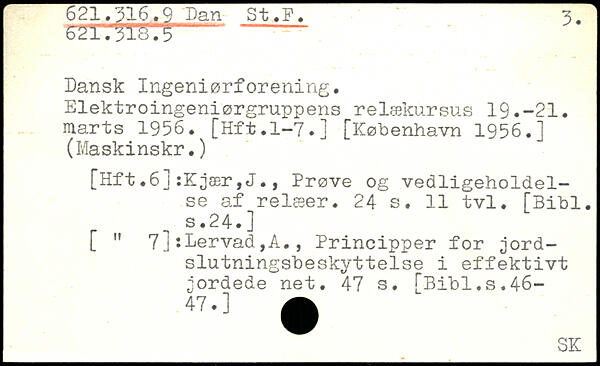 Dansk Ingeniørforening. Elektroingeniørgruppens relækursus 19.-21. marts 1956. [Hft.1-7.]