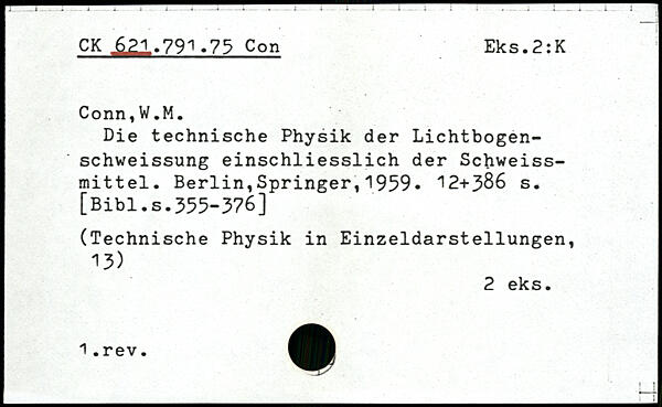 Die technische Physik der Lichtbogen-schweissung einschliesslich der Schweiss-mittel.