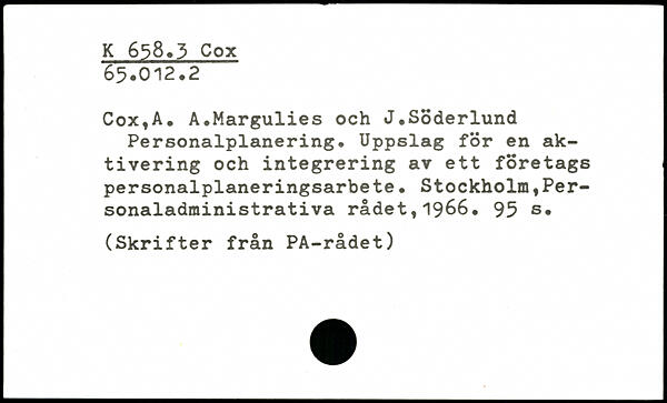 Cox,A, A.Margulies och J.Söderlund Personalplanering. Uppslag för en aktivering och integrering av ett företags personalplaneringsarbete.
