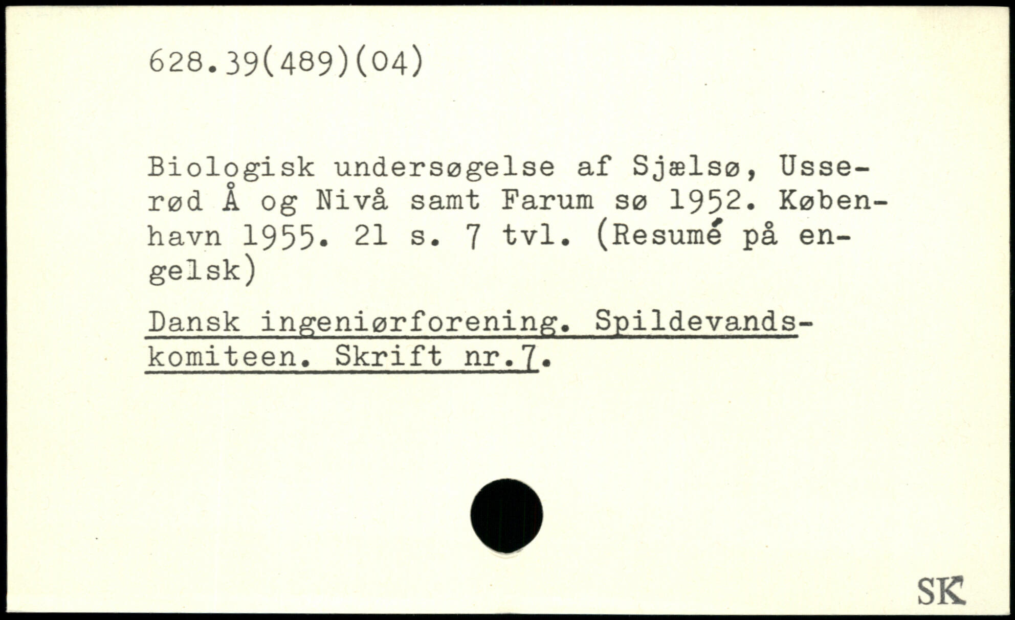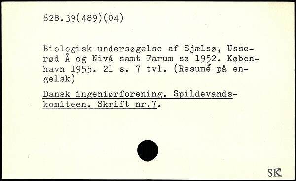 Biologisk undersøgelse af Sjælsø, Usse-rød Å og Nivå samt Farum sø 1952.