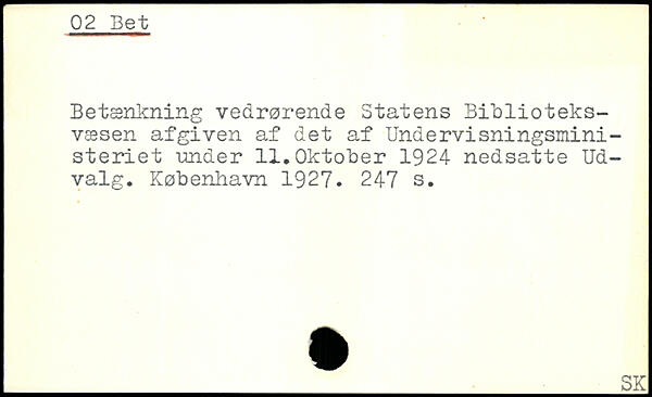 Betænkning vedrørende Statens Biblioteksvæsen afgiven af det af Undervisningsministeriet ander 11.Oktober 1924 nedsatte Udvalg.