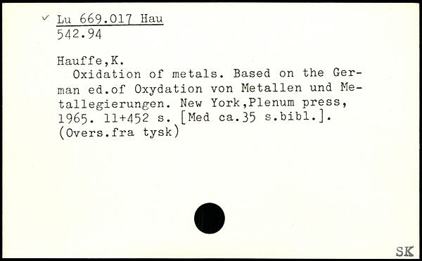 Oxidation of metals. Based on the German ed.of Oxydation von Metallen und Metallegierungen.