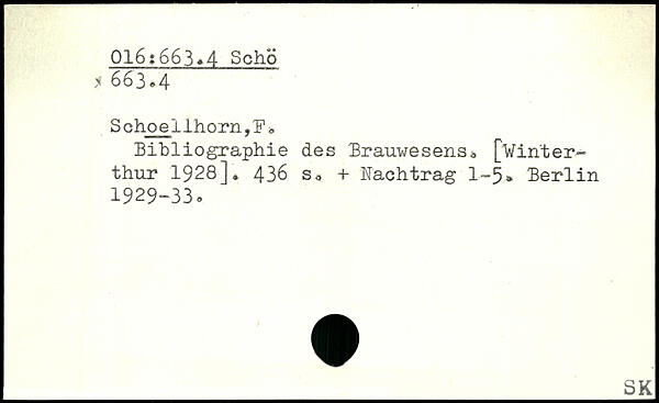 Sohoe1Ihorn,F. Bibliographie des Brauwesens. [Winterthur 1928]