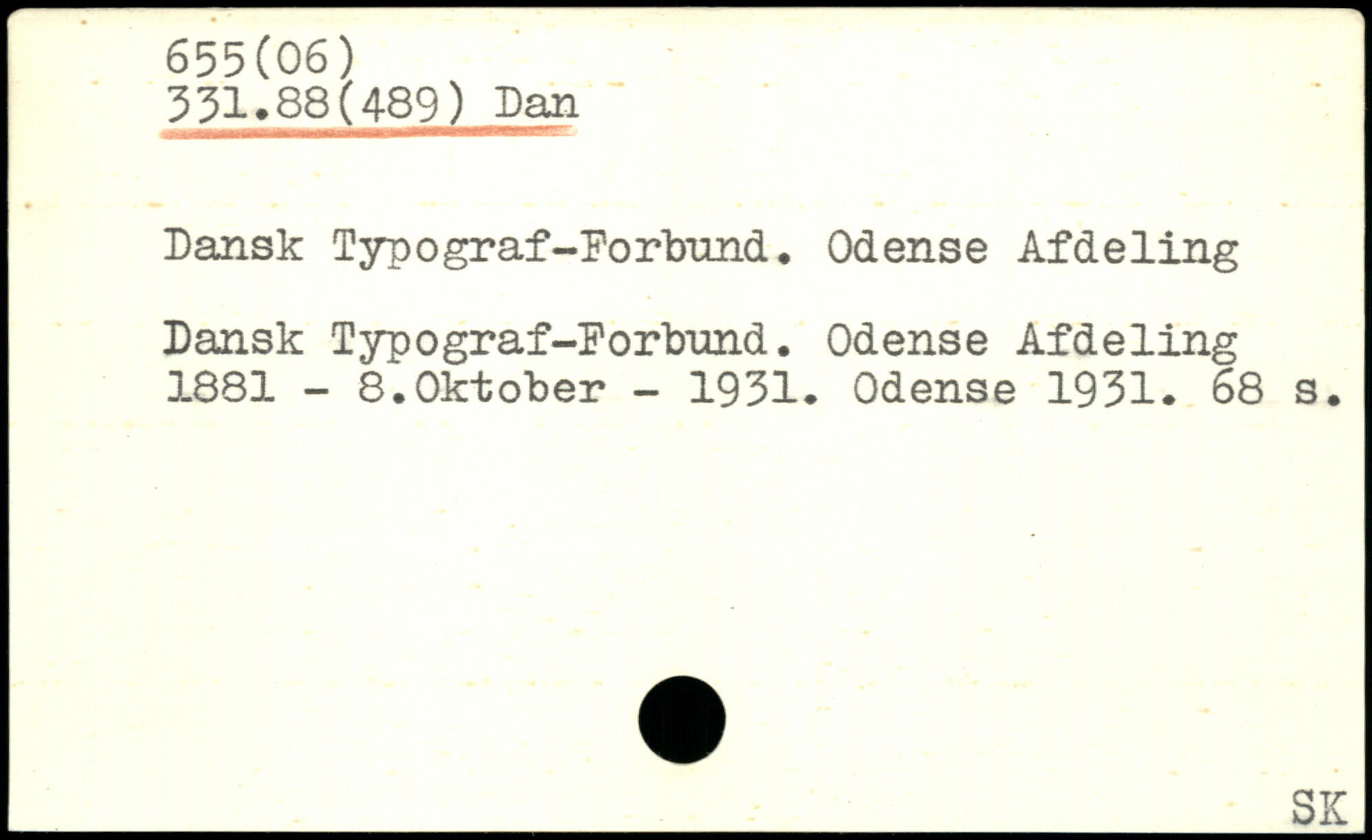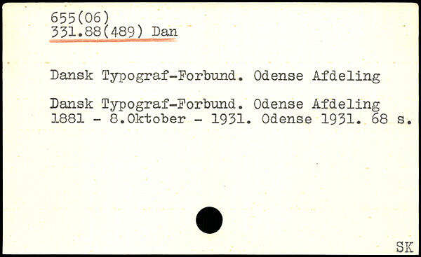 Dansk Tyn ograf-Forbund. Odense Afdeling Dansk Typograf-Forbund. Odense Afdeling 1881 - 8.Oktober - 1931. Odense 1931.