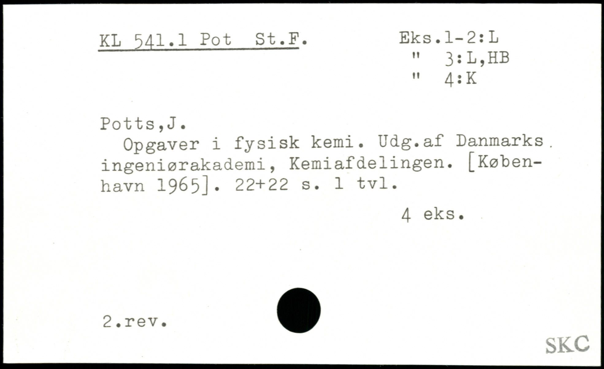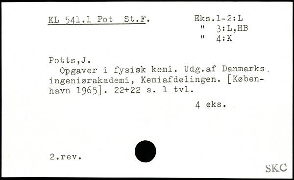 Opgaver i fysisk kemi. Udg.af Danmarks, ingeniørakademi, Kemiafdelingen.