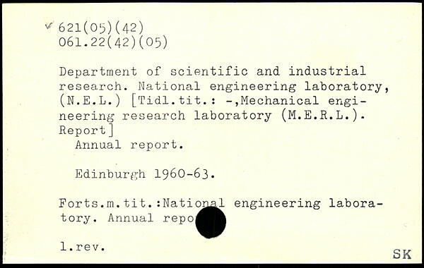 Department of scientific and industrial research. National engineering laboratory, (N.E.L.) [Tidl.tit.: Mechanical engi neering research laboratory (M.E.R.L.). Report] Annual report. Edinburgh 1960-63. Forts.m.tit.:Nation^L engineering laboratory. Annual repo^^A ) 1-rev-_SK