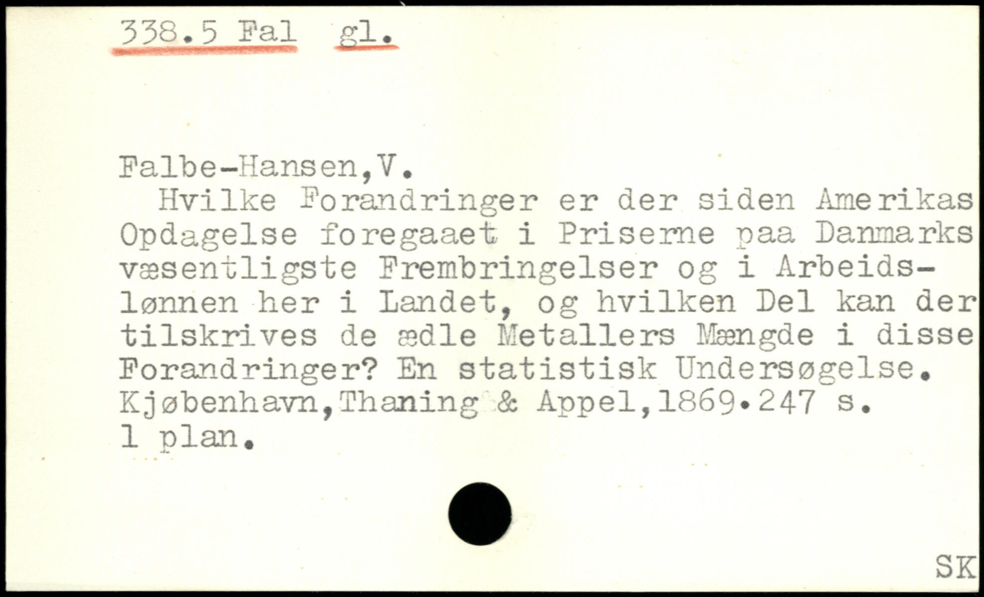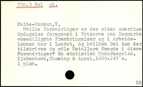falb e-Hans en,V. Hvilke forandringer er der siden Amerikas Opdagelse foregaaet i Priserne paa Danmarks væsentligste frembringelser og i Arbeids-lønnen her i Landet, og hvilken Del kan der tilskrives de ædle Metallers Mængde i disse forandringer? En statistisk Undersøgelse.