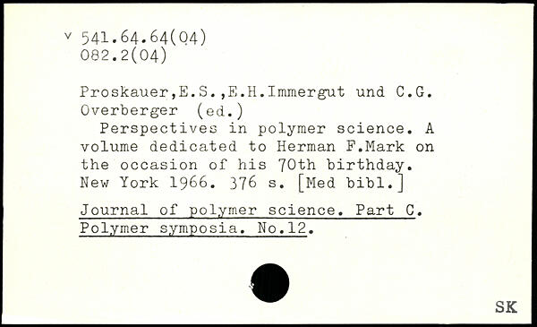 Perspectives in polymer science. A volume dedicated to Herman F.Mark on the occasion of his ^Oth birthday.