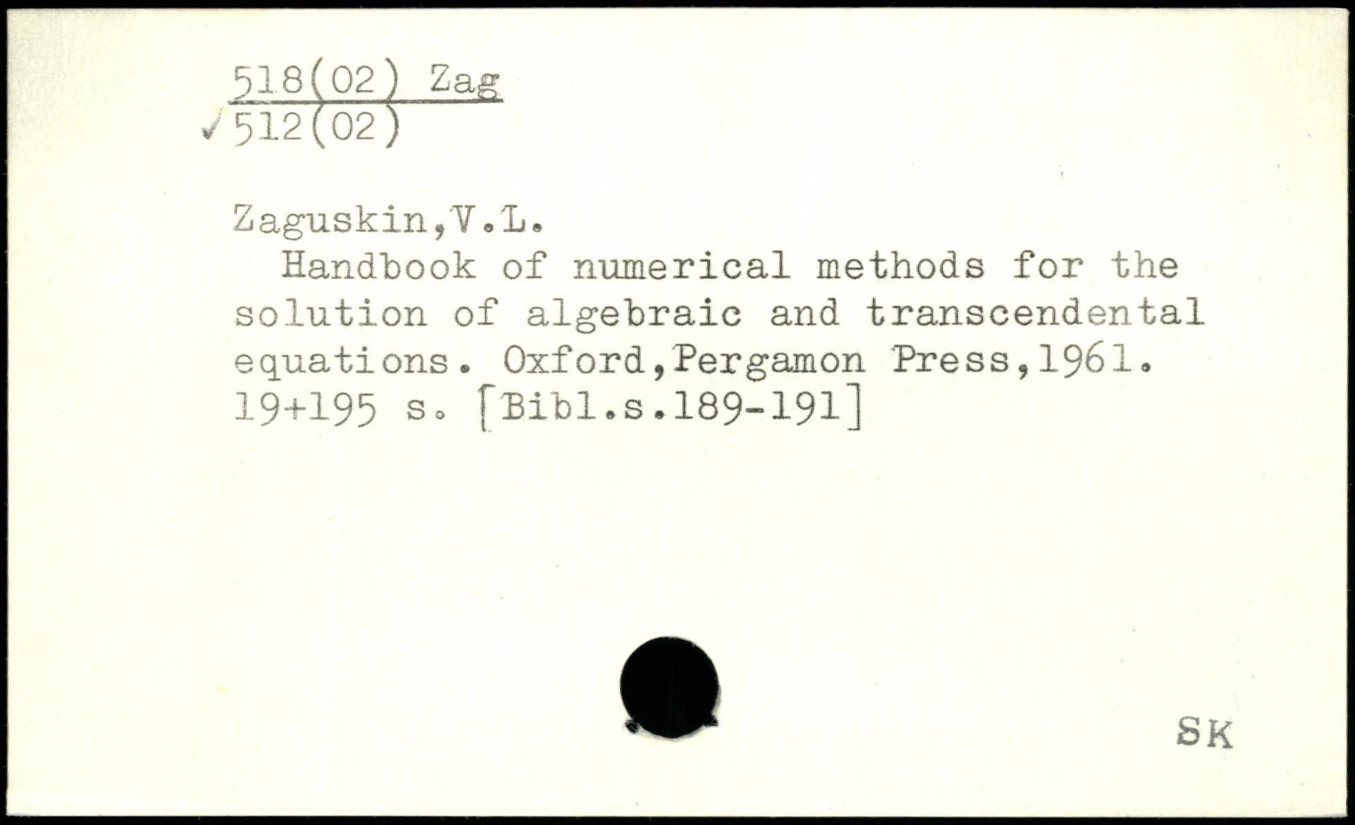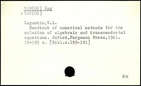 Handbook of numerical methods for the solution of algebraic and transcendental equations.