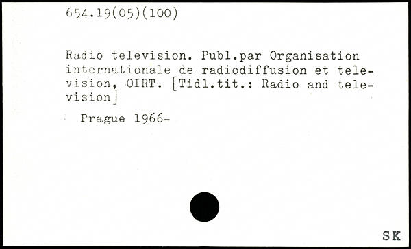 Radio television. Publ.par Organisation internationale de radiodiffusion et television, OIRT. [Tidl.tit.: Radio and television]