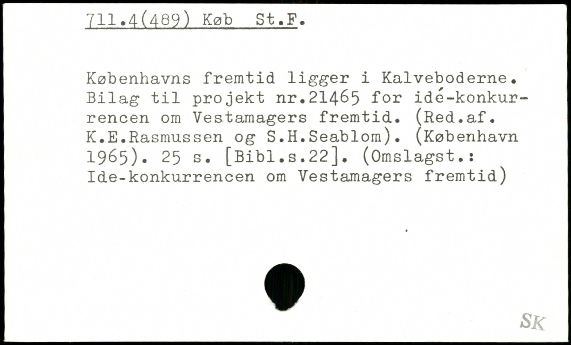 Københavns fremtid ligger i Kalveboderne. Bilag til projekt nr.21465 for idé-konkurrencen om Vestamagers fremtid. (Red.af. K.E.Rasmussen og S.H.Seablom). (