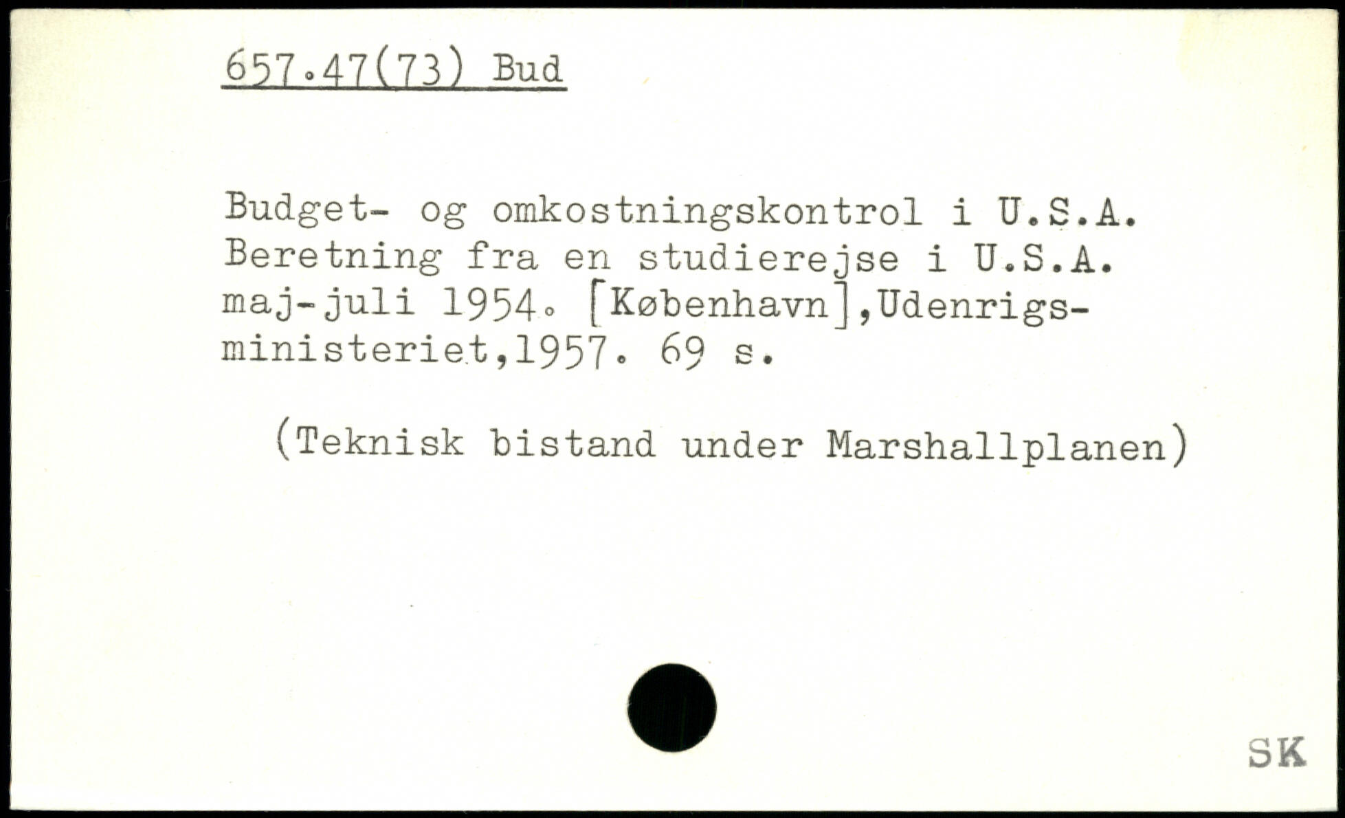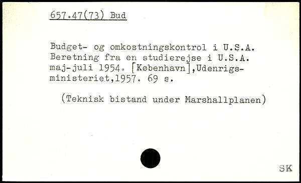 Budget- og omkostningskontrol i U.S.A. Beretning fra en studierejse i U.S.A. maj-juli 19540 [København],Udenrigsministeriet ,1957.