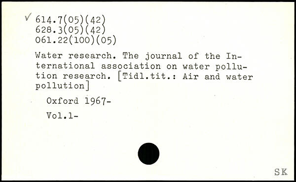 Water research. The journal of the International association on water pollution research. [Tidl.tit.: Air and water pollution]