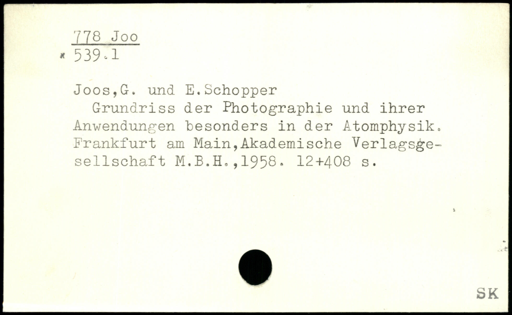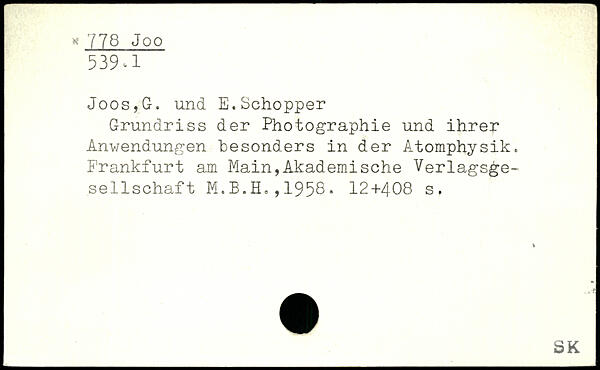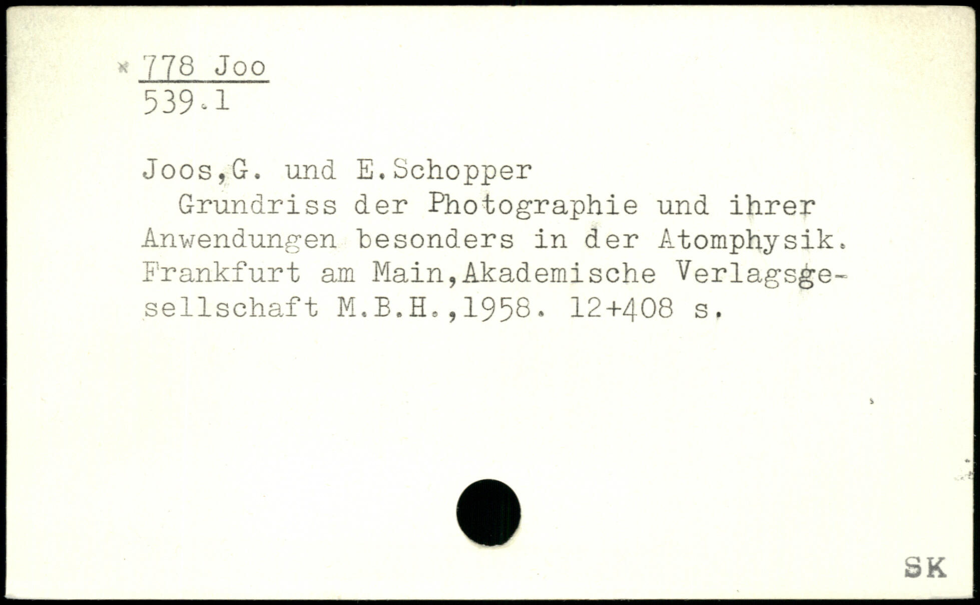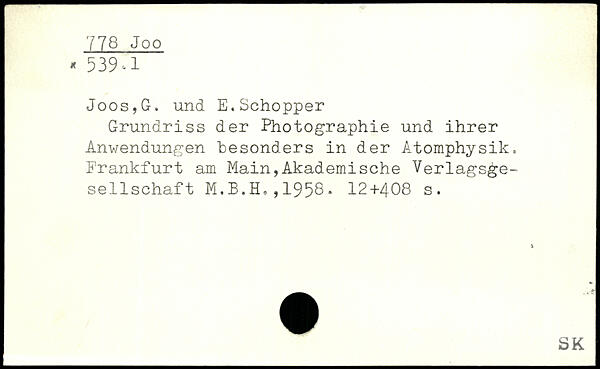 Grundriss der Photographie und ihrer Anwendungen besonders in der Atomphysik, Frankfurt am Main,Akademische Verlagsgesellschaft M.B.H,,1958.