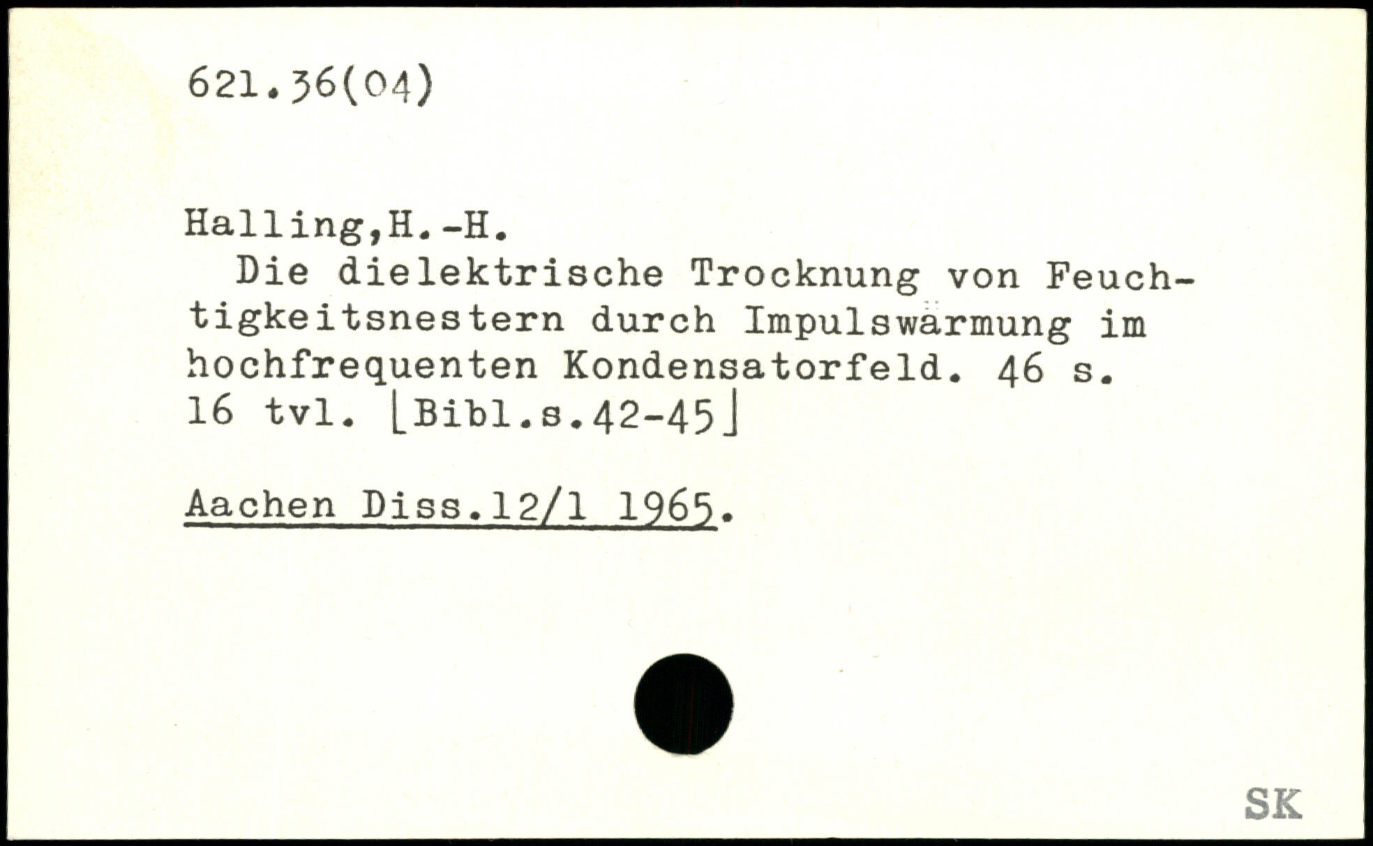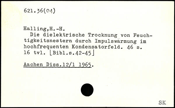 Die dielektrische Trocknung von Feuch-tigkeitsnestern durch Impulswarmung im hochfrequenten Kondensatorfeld.
