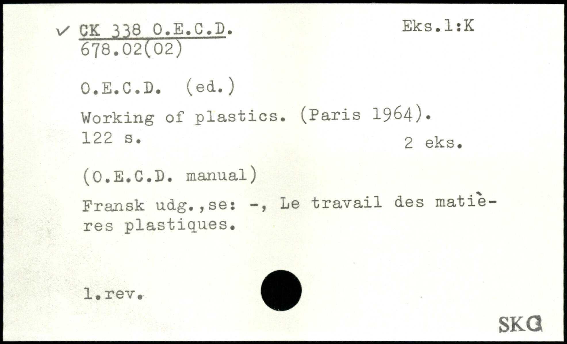 O.E.G.D. (ed. ) Working of plastics. (