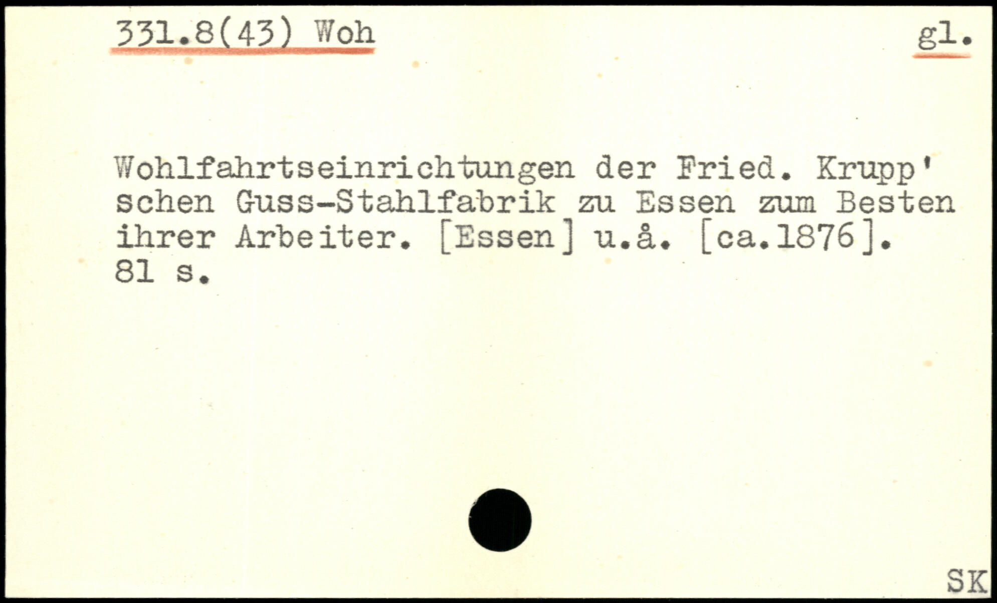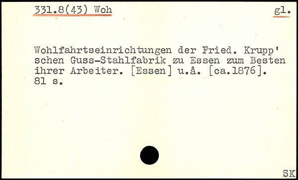 Wohlfahrtseinrichtungen der Fried. Krupp. sehen Guss-Stahlfabrik zu Essen zum Besten ihrer Arbeiter. [Essen] u.a. [ca.1876].