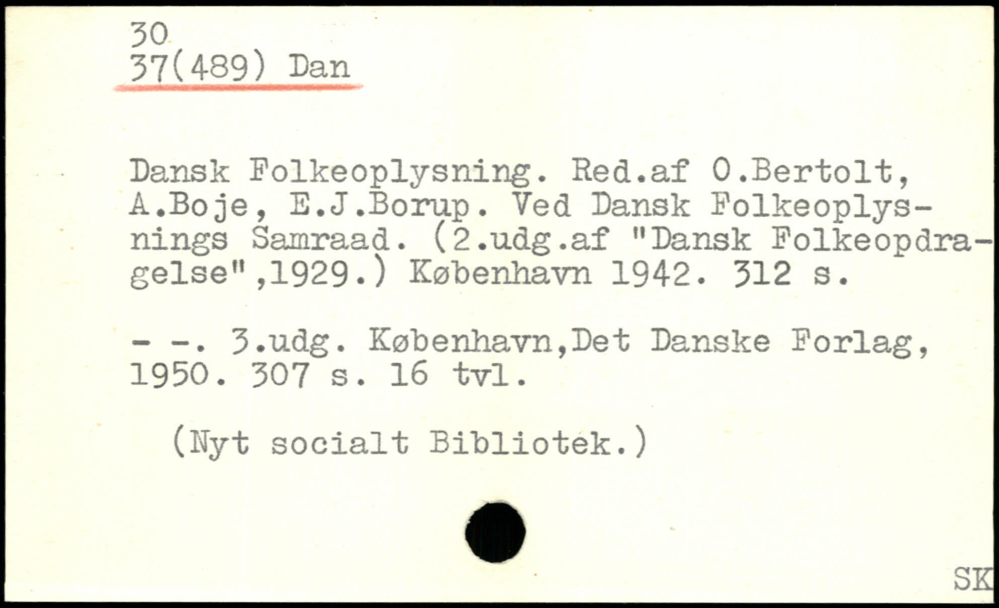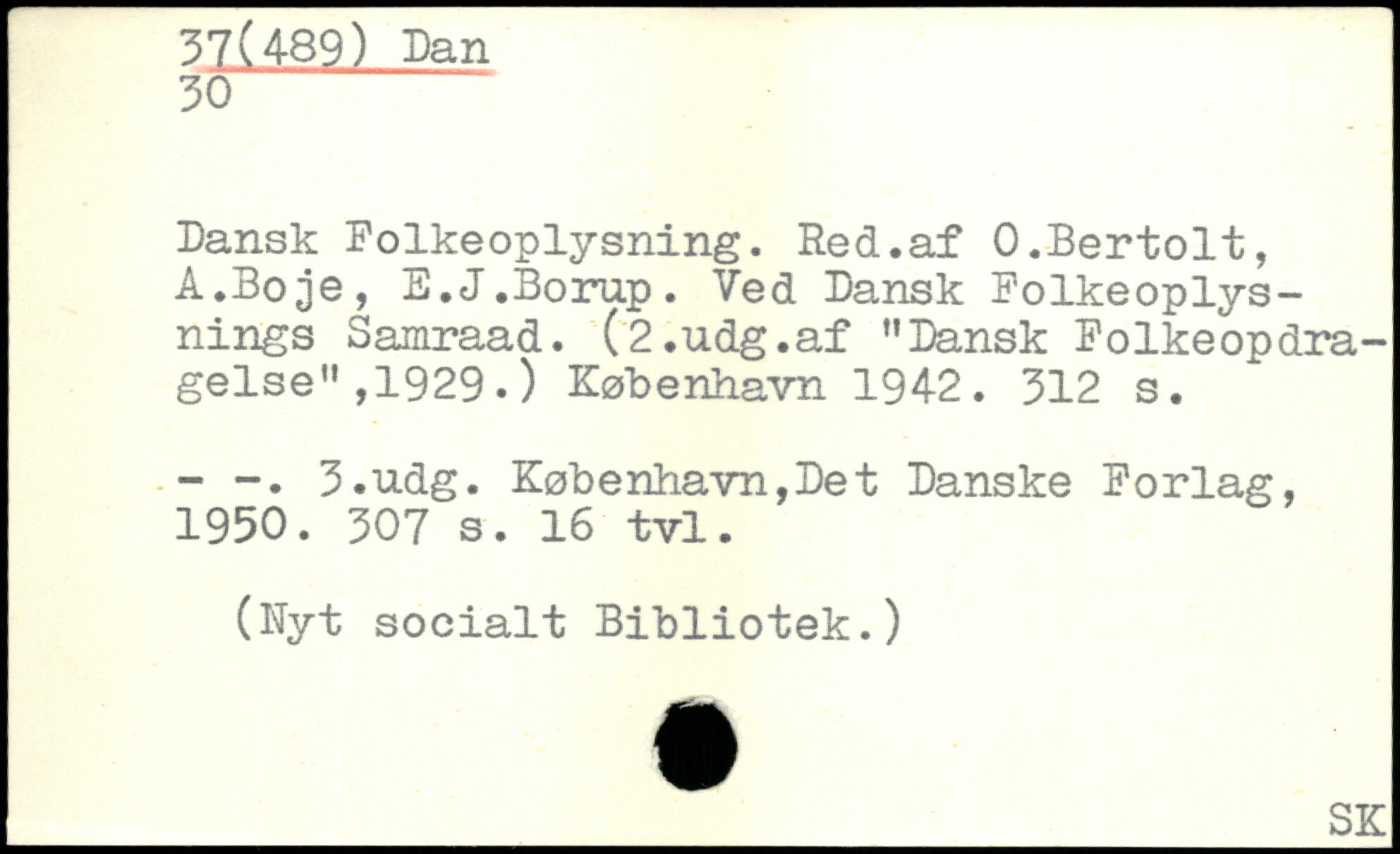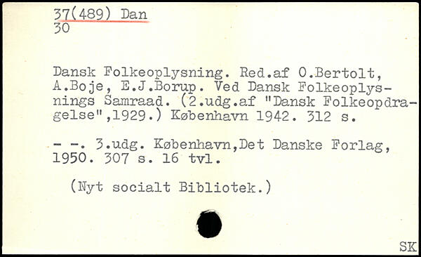 Dansk Folkeoplysning. Red.af O.Bertolt, A.Boje, E.J.Borup. Ved Dansk Folkeoplysnings Samraad. (